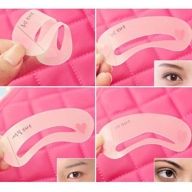 3. Align dotted line with natural start and end points of eyebrows and press onto face by placing thumb and index finger onto Drawing Guide's heart shapes. Fill in half of brow.